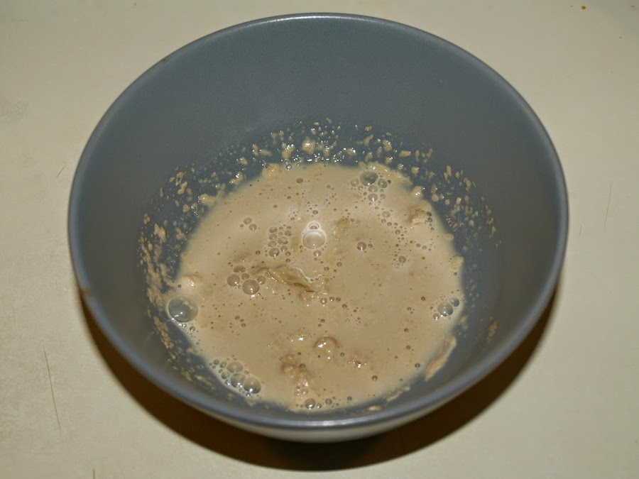 - Ponemos la levadura en un bol mezclada con un poco de agua tibia y la dejamos reposar unos 10 minutos.
