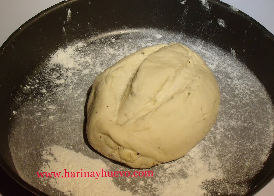 Seleccionamos el programa de solo amasado. Como siempre os digo que mi panificadora es Clatronic BBA 3364 y el programa es el 8. Tendremos que esperar 1hora y media hasta que termine. Cuando haya acabado sacamos la masa y le damos la forma que deseamos. Hacemos unos cortes en la parte superior y lo dejamos reposar hasta que doble el tamaño.