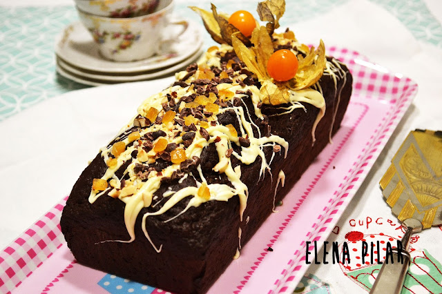 Vertemos la masa dentro de un molde de cake engrasado y con la base cubierta con papel vegetal. Y horneamos 45-50 minutos a 170ºC o hasta que al introducir una brocheta, salga limpia.