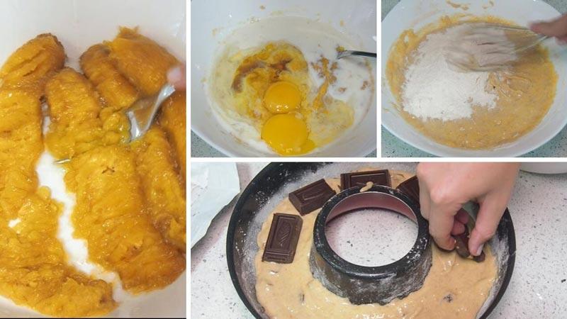 En primer lugar vamos a machacar los plátanos maduros. Puedes triturarlos con un tenedor hasta que quede una masa pastosa y homogénea. Cuando lo tengas listo, agregamos la leche. Puedes usar la leche que más te guste que puede ser de vaca, de almendras…También añadimos la cucharada de miel y los huevos.A continuación, mezclamos todos los ingredientes con la ayuda de un tenedor o varillas de mano.