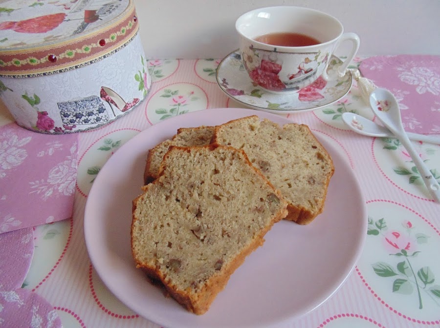 Comenzamos por pelar y chafar los plátanos. A veces encontramos plátanos de diferentes tamaños; para hacernos una idea aproximada, necesitaremos unos 400 g de carne de plátano chafada. En un recipiente aparte batimos los huevos con el azúcar y la vainilla. Añadimos la mantequilla fundida y luego la harina, la sal y el impulsor. Mezclamos bien e incorporamos la leche. Por último agregamos las nueces troceadas. Esta vez he utilizado nueces pecanas y quedan tan bien como las normales o incluso mejor. Vertemos la mezcla en un molde tipo budín, previamente engrasado y horneamos a 180 ºC durante unos 40 minutos o hasta que al introducir un palillo en la masa, éste salga seco. Desmoldamos, dejamos enfriar y tomamos nuestro pan para desayunar o merendar, solo o con mermelada delicioso!