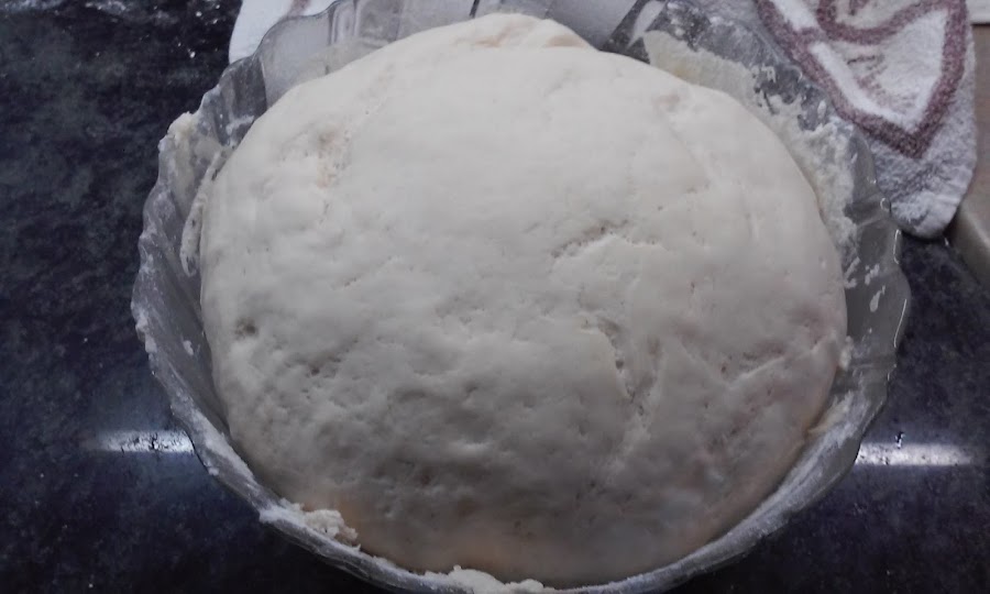 6.- Volvemos a colocar en el bol y tapamos con un trapo un poco humedo para una primera fermentación de unos 40 minutos.