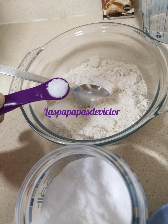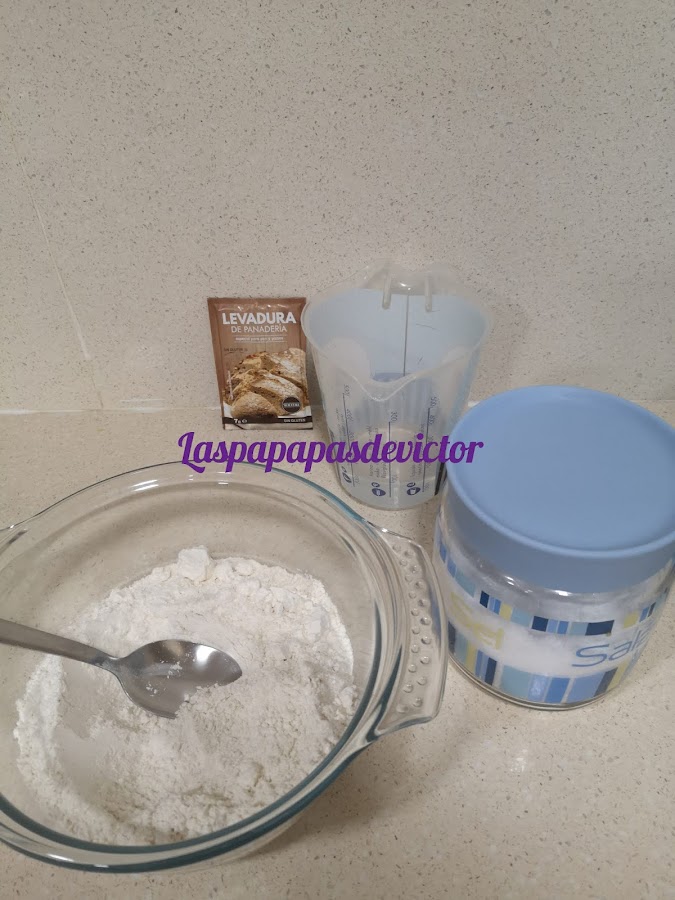 En un bol ponemos todos los ingredientes o si tenemos panificadora le ponemos en el bol la harina y la sal