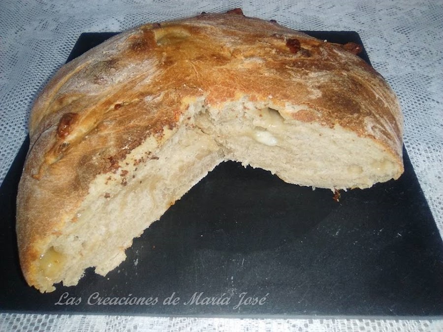Cortar el queso en trocitos muy pequeños. Poner todos lo ingredientes en la cubeta de la panificadora según están puestos. Puse el programa 9 (masa de pizza) en mi panificadora, tarda 1:30. Cuando termino, la amase, le di forma de hogaza. Lo deje reposar 20 minutos y lo metí en el horno hasta que vi que estaba hecho.