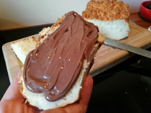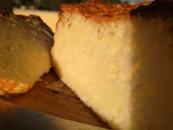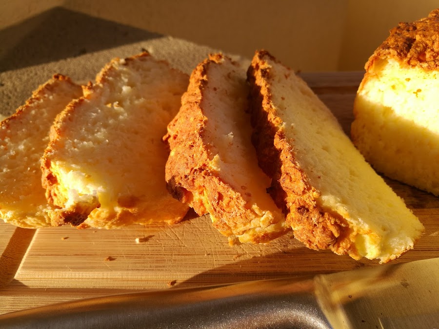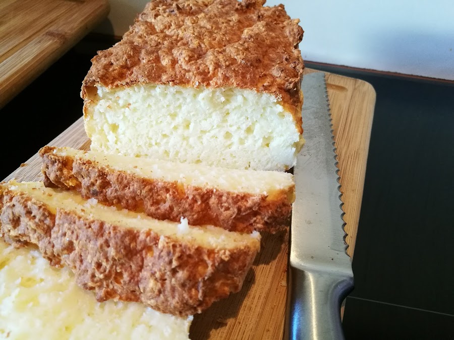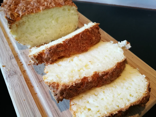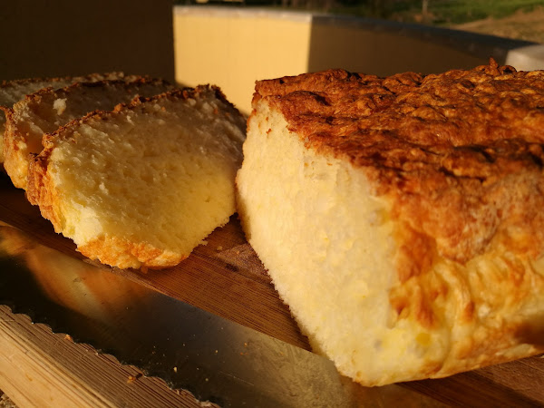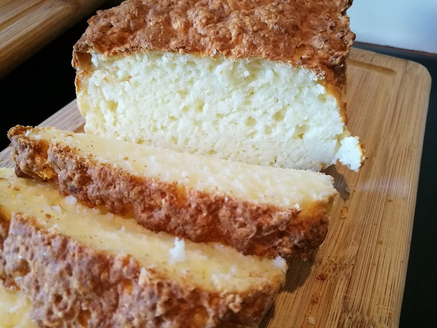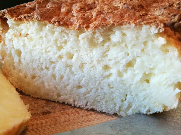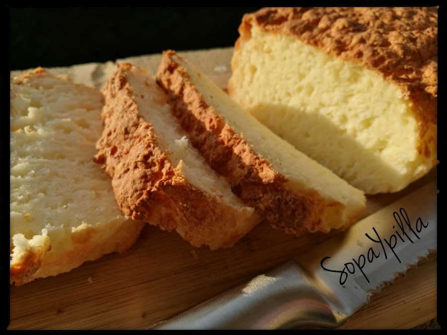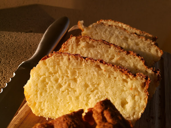 Este pan es una auténtica pasada...tiene un punto ácido del queso, lo que lo hace ideal para comerlo con mermelada, crema de cacao, o cualquier cosa dulce. La miga ya la véis, esponjosita. La única pega es que se seca rápido, así que si no lo vais a utilizar en el día, mejor lo cortamos a rebanadas y al congelador. Podéis ir sacando rebanadas cuando os apetezca y queda igual de rico.