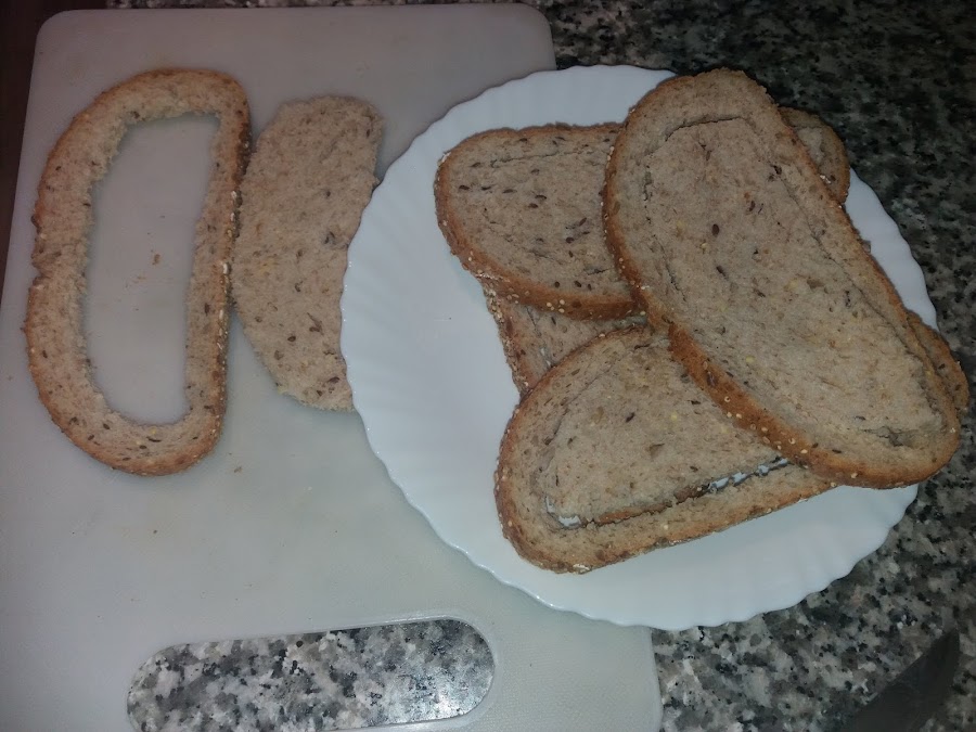 Empezaremos recortando las tostadas de la forma que vemos en la foto y las reservamos