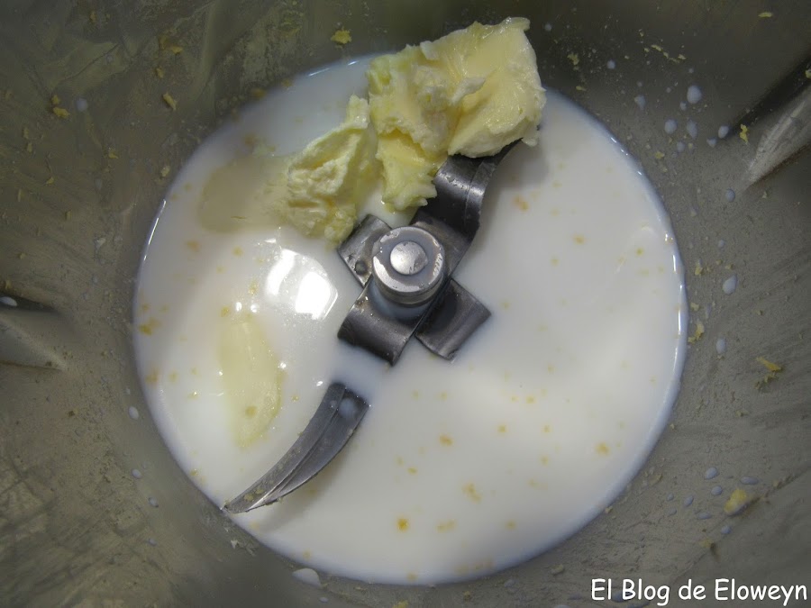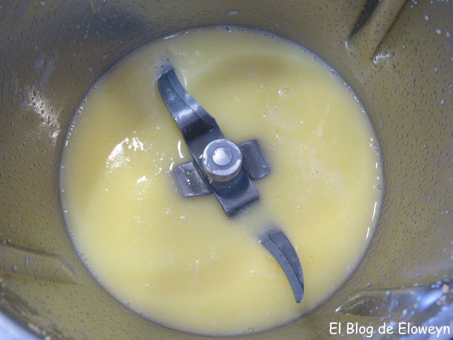 Reservamos el queso. No hace falta lavar el vaso. Ponemos el azúcar.