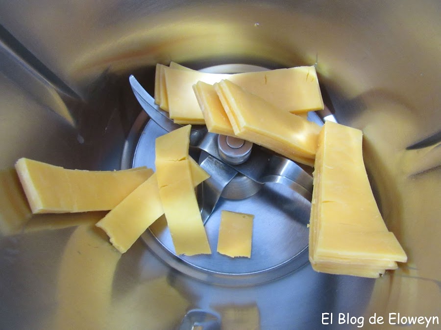 100 gr. de queso cheddar en trozos (Yo sólo encontré en láminas)