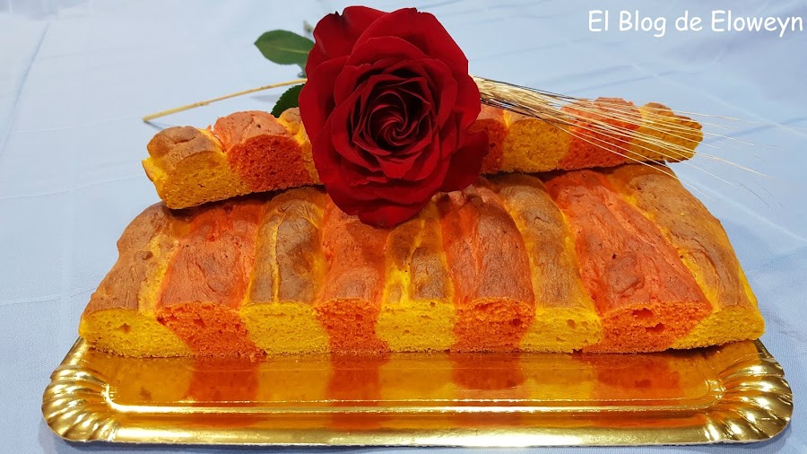 Una vez frío se debe de cortar a lo largo para que se vean los colores. Muchas gracias a Mª. Teresa Bardalet por la receta.