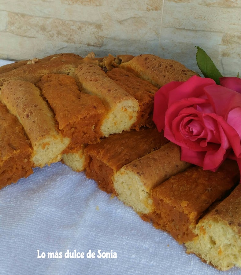 Precalentamos el horno a 180°, calor arriba y abajo. Ponemos un recipiente con agua en la parte de abajo para crear vapor y horneamos unos 40 minutos, hasta que esté ligeramente dorado por la parte de arriba.