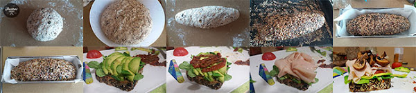 Pan de semillas con Aguacate, Tomate seco, Pavo y Champiñones