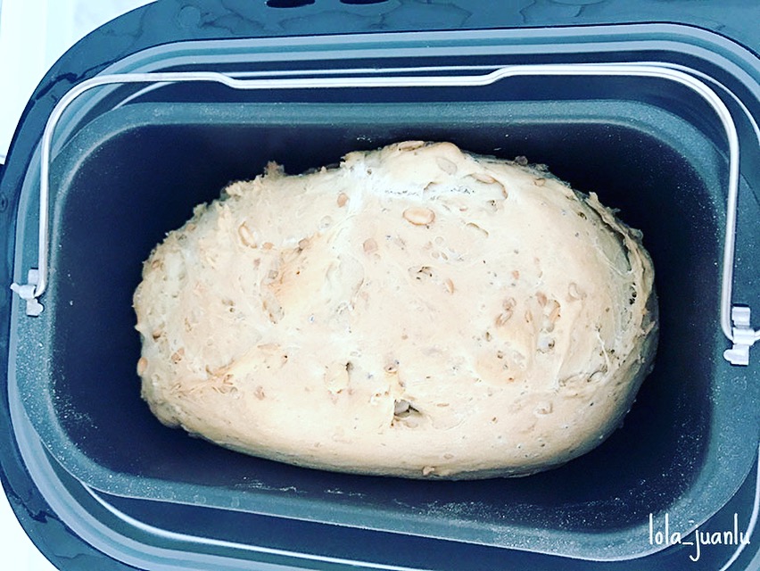 Antes de hornear, la panificadora nos avisa por si queremos quitar las varillas de amasado para que no se queden en el interior de la pieza de pan. Yo lo suelo hacer, así luego no tengo que tener cuidado de no dañarlas al cortar el pan.