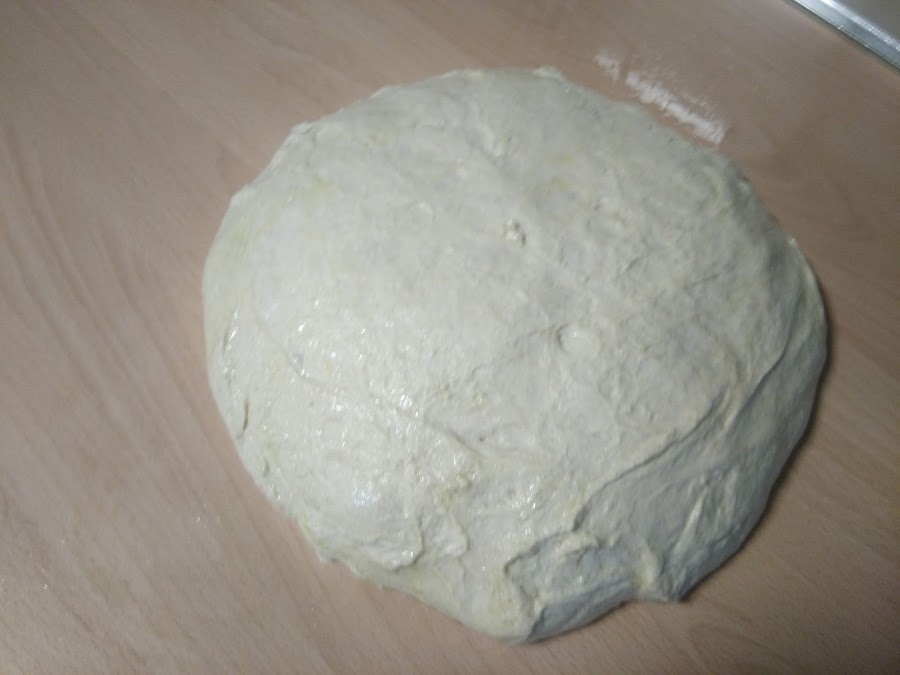 En la encimera ligeramente aceitada, volcamos la masa con cuidado de no desgarrarla.