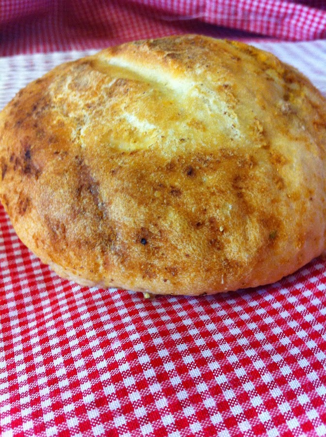 Metemos todos los ingredientes en la panificadora en el programa de amasar, o si lo haceis de forma manual colocar la harina y hacer un volcán en el medio y añadimos todos los ingredientes y cuando la masa no se pegue a tus dedos y tenga una consistencia intermedia hacer la forma del pan que queramos y dejar levar aproximadamente una hora.