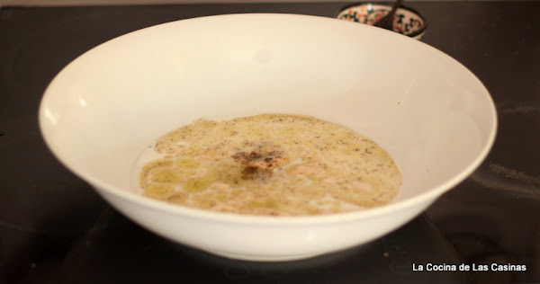En un bol mezclas todos los ingredientes excepto la mantequilla, las setas y la harina. Si tienes aceite de trufa mejor que mejor.