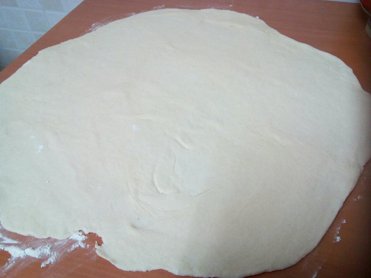 3.- Una vez la masa haya doblado su volumen, la extendemos con el rodillo sobre una superficie enharinada.