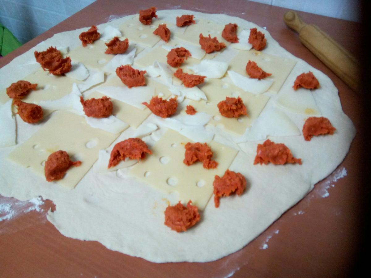 4.- Repartimos por encima el queso y la sobrasada.