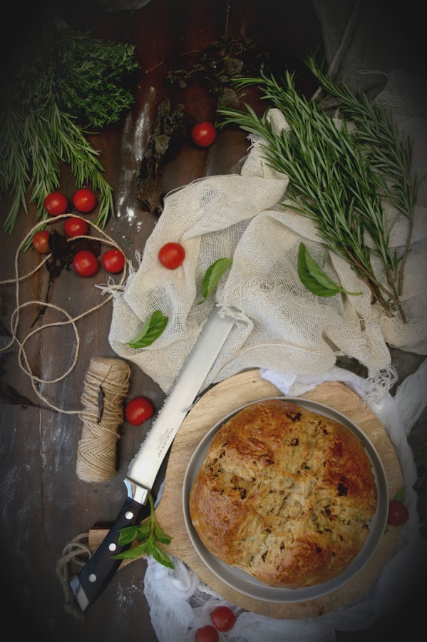 Yo estuve viviendo allí un año y la verdad, mi comida era toda española con lo cual, no probé esta delicia in situ. Hace unos mil años, hice uno y salió estupendo, pero no me acuerdo de la receta ni tengo fotos así que me he inventado este. He querido combinar el pan de soda con los ingredientes típicos de la ensalada caprese y así darle un toque especial a mi pan. La receta básica la cogí del libro ¿Hacemos pan? de Iván Yarza y Alma Obregón.
