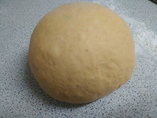 Empieza a amasar a velocidad baja y a los 5 m añade el agua con la levadura disuelta y sigue amasando, durante 10-15 minutos hasta velocidad 3. Si ves que la masa está demasiado pegajosa y no se maneja bien, añade un poco más de harina y ahí puedes echar el orégano o la albahaca. Si no tienes amasadora, mezcla muy bien y en una superficie lisa y enharinada comienza a amasar ocn las manos,unos 15 m.