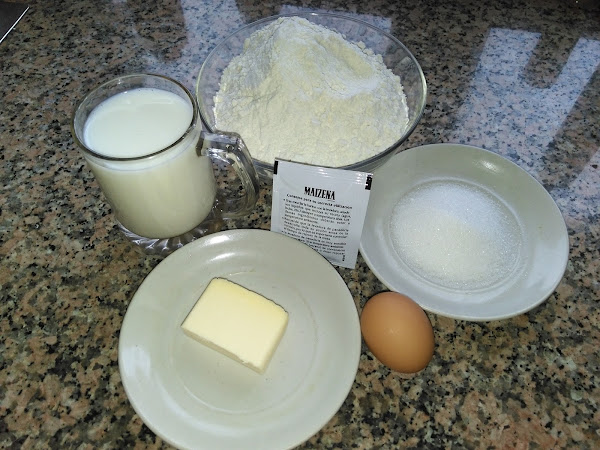 Echamos la leche, luego el huevo, el sal, la margarina o mantequilla (mejor blanda), el azúcar, el harina y por último la levadura, yo utilicé la levadura de panadería de maizena porque para esta receta se necesitan como 5 g y estos sobres son de 5,5.