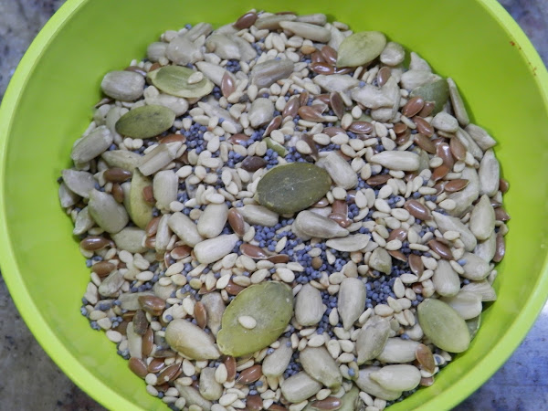 TRUCO.- si no voy a estar en casa cuando pite la panificadora, añado las semillas al comienzo del programa y chinpun.