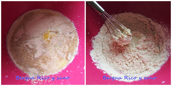 2. Añadimos entonces la Stevia o el azúcar, la sal, la levadura y la yema de huevo (yo eché el huevo entero). Mezclamos.
