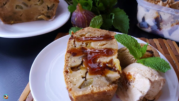 Consejos: Pan desprende el jugo de la fruta durante la cocción. Vierte el jugo sobra sobre un plato. Lo dejamos enfriar, lo desmoldamos y dejamos que se enfríe sobre una rejilla. A continuación, deja reposar el pan 5 o 6 horas para que todos los sabores estén bien concentrados y la masa tenga mayor consistencia. Puedes disfrutar de este postre en los desayunos o las meriendas. También lo puedes comer como postre acompañado por unas bolas de helado de;turrón, vainilla o chocolate.
