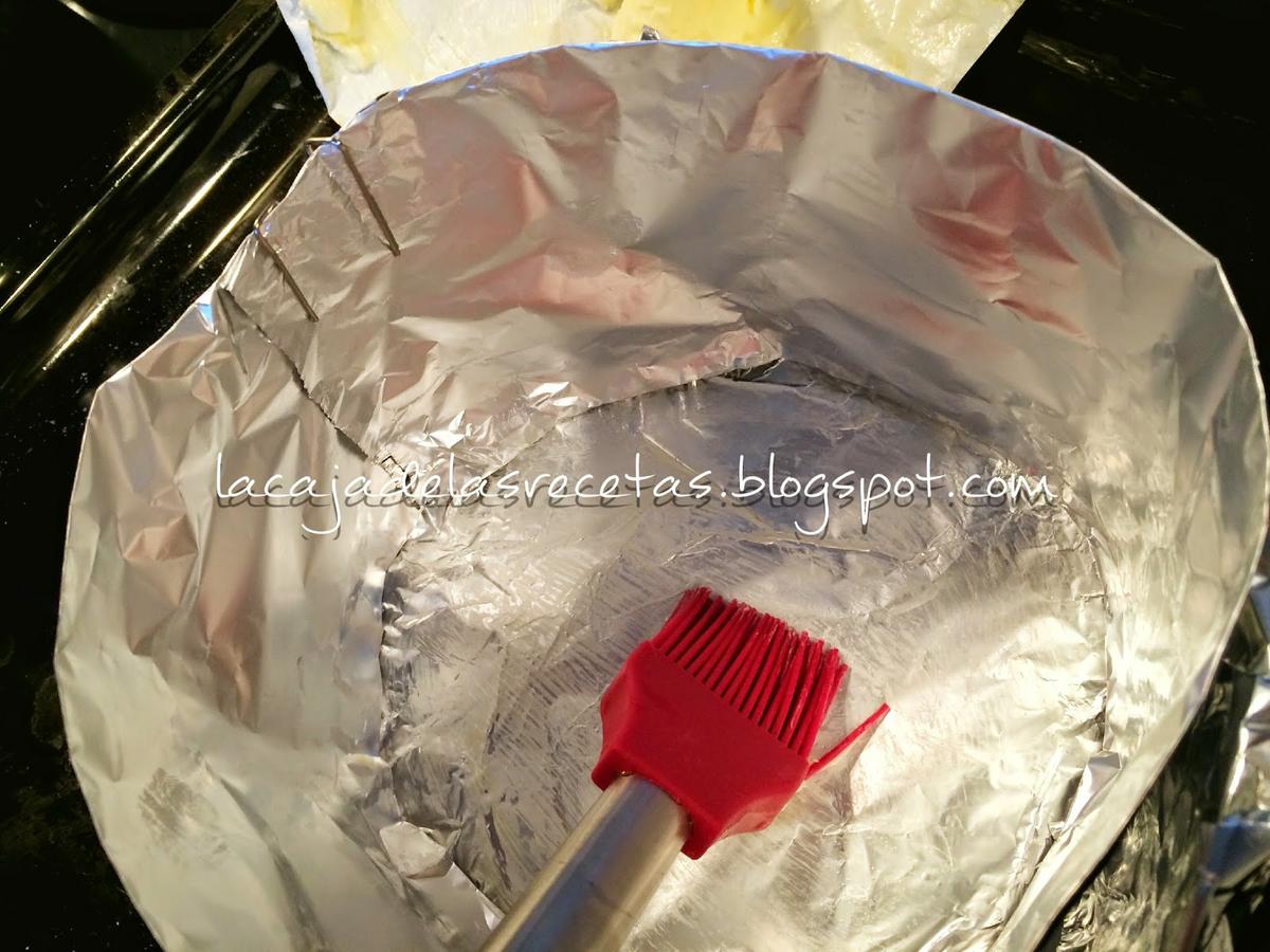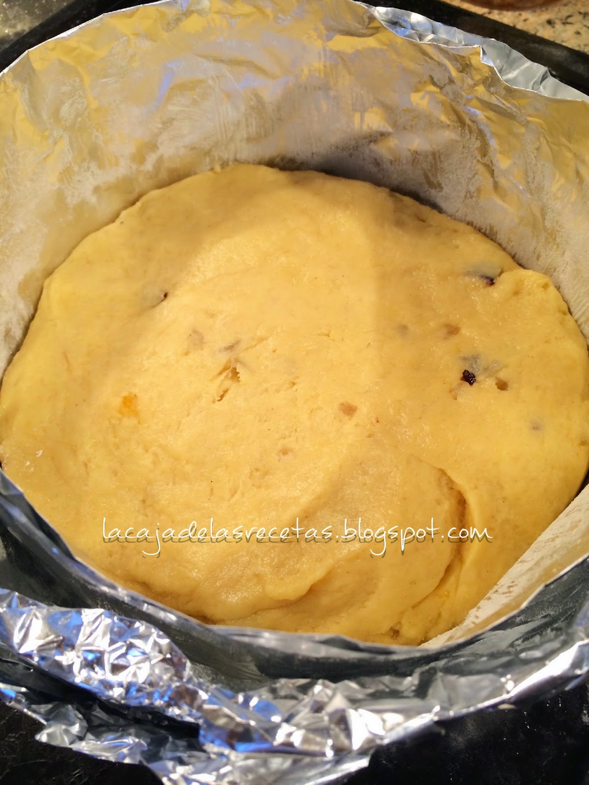 Si no tienes molde de panettone, en lo que reposa la masa, tienes que hacer manualidades: Coge un caldero alto de entre 15 y 20cms de diámetro, no más, y papel de aluminio. Forra con el papel de aluminio la base y las paredes (vale tanto que lo hagas por dentro del cazo como por fuera en función del diámetro del mismo) con las suficientes capas como para que coja algo de consistencia una vez retires el caldero. Ahí tienes tu nuevo molde de repostería. Puedes asegurarlo con un clip de escritorio. Ya sólo queda engrasarlo con mantequilla y espolvorearle harina.