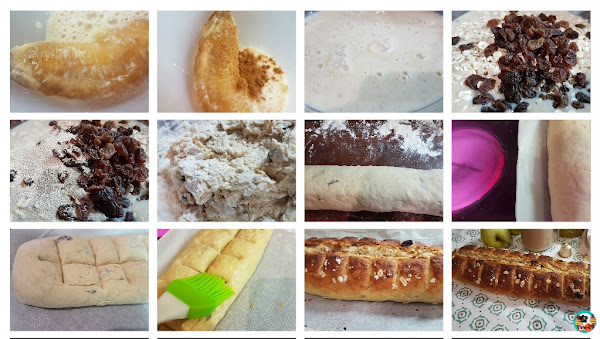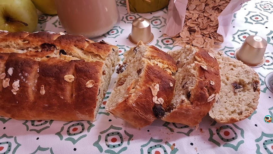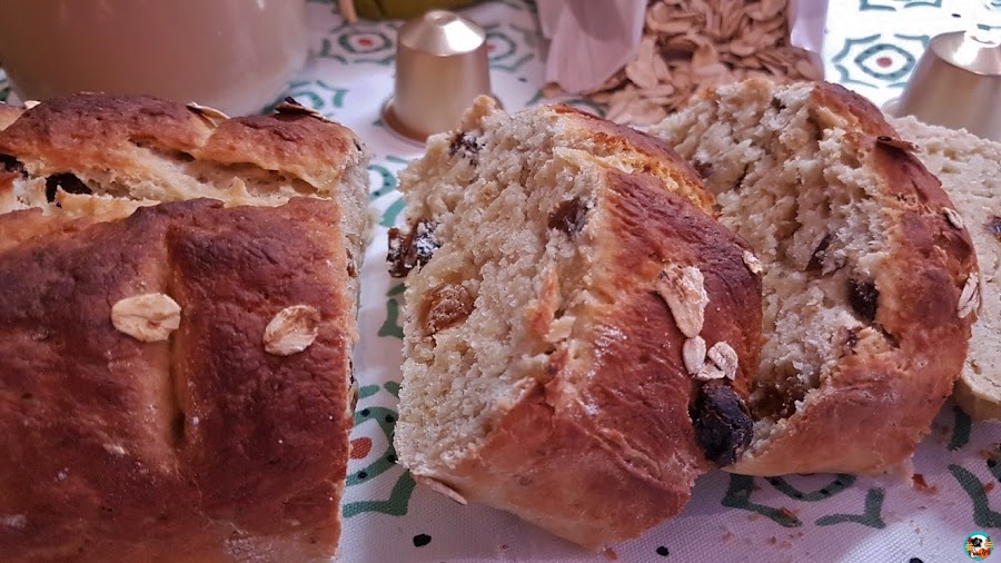 Hoy toca hacer pan, pan del bueno, sin azúcar y sin huevo. Un pan dulce con fruta madura, fruta seca y copos de avena.