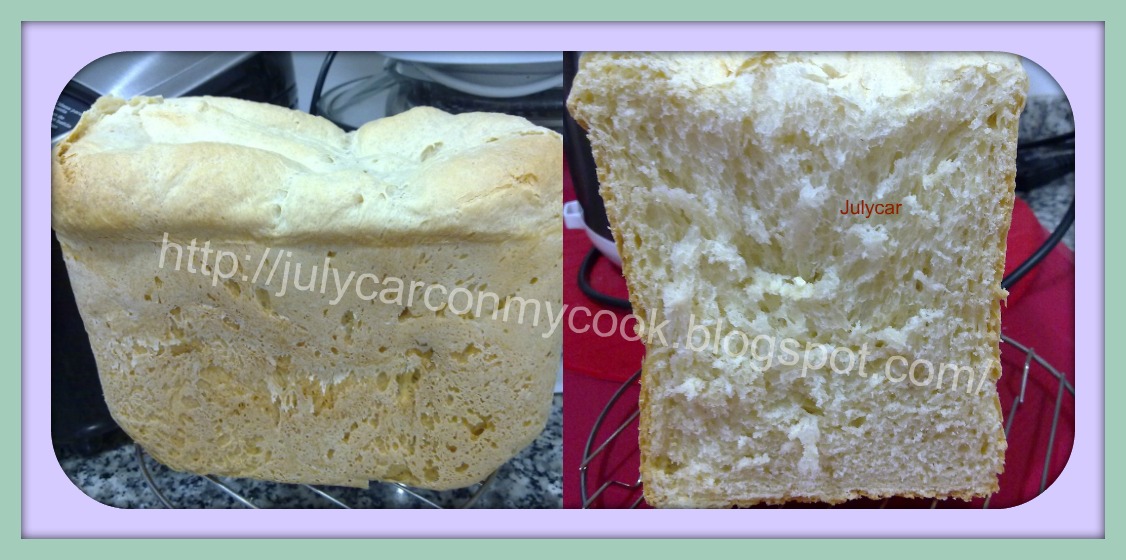 Poner todos los ingredientes en la cubeta de la panificadora en el mismo orden de la receta, programa nº 4 (pan dulce), 750gr, tueste medio, cuando termine sacar y dejar enfriar sobre una rejilla