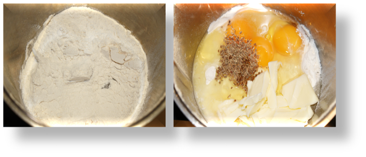 Abre el vaso y añade los huevos, la mantequilla, el agua de azahar, las semillas de anís. Cierra el vaso y pon el cubilete. AMASA SIN CUBILETE 5 MINUTOS / VASO CERRADO / ESPIGA.