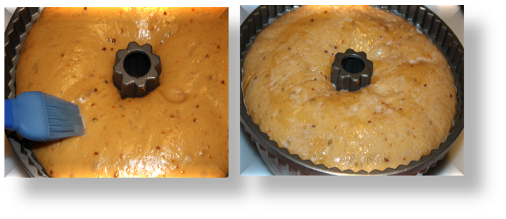 Elige un molde que no tenga estrías. Yo no lo hice y me costó un poquitín desmoldarlo. A continuación, unta el molde con spray antiadherente. Reserva.