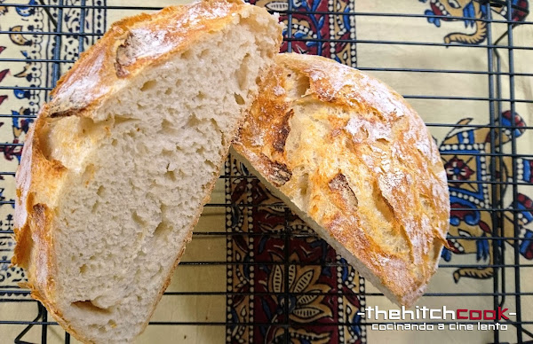Dejamos reposar fuera del horno y de la cocotte unos 10 minutos (el pan muy caliente sienta mal) Y luego ya disfrutáis de la magia, del aroma y de la satisfacción plena de devorar vuestro propio pan casero. ¡Que aproveche, hitchcookian@s!