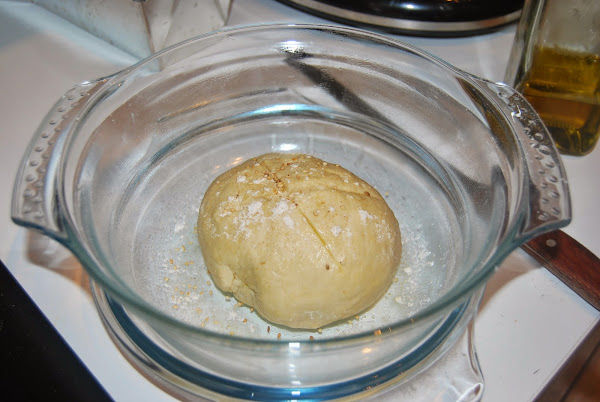 Ponemos nuestra masa, con forma de bola, en el recipiente, y con un cuchillo bien afilado (como el cuchillo jamonero, por ejemplo) le hacemos un corte en la parte superior en forma de cruz.