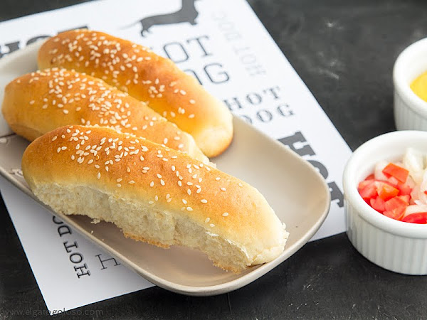 Es la misma masa del pan para mini hamburguesas que ya había publicado anteriormente. Mi amiga Melba del blog Anís y papelón me dio la idea. Es básicamente el mismo pan pero con forma alargada.