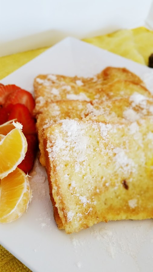 Una vez dorados, sirve en un plato y acompaña con un poco de fruta, puedes adornar con un poco de azúcar Glass.
