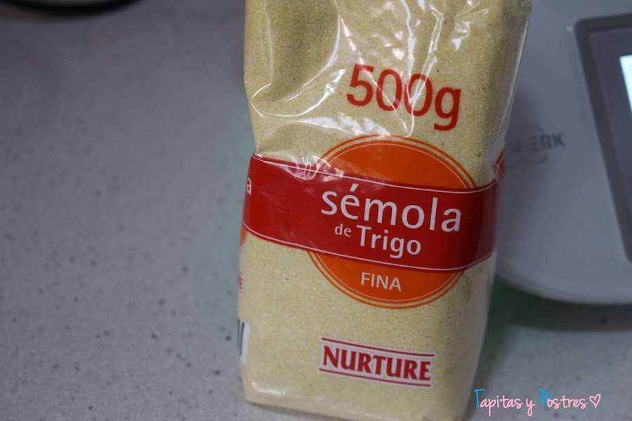 Mezclamos la sémola, el azúcar, la levadura y la mantequilla fundida unos segundos.