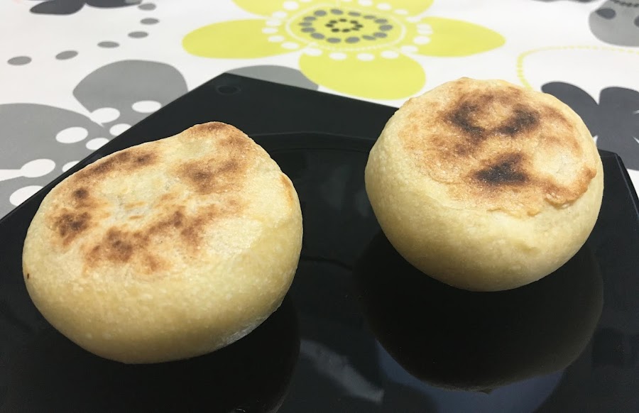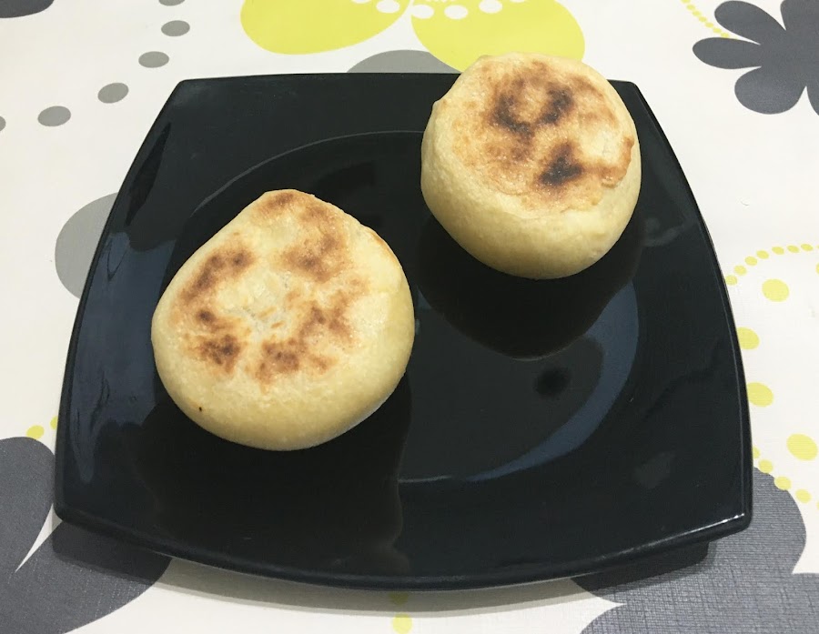 - En una sartén (sin aceite), cocina a fuego lento los panecillos con la tapa de la sartén puesta durante 10 minutos o hasta que veas que están dorados.
