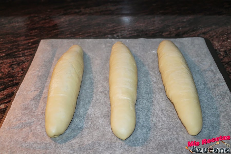 Ahora cogeremos el pan y lo pondremos con la parte que acabamos de cerrar hacia abajo en la bandeja que tengamos pensado hornear, una vez tengamos los panes listos lo taparemos con un paño húmedo y los dejaremos fermentar entre 50 minutos o 1 hora.
