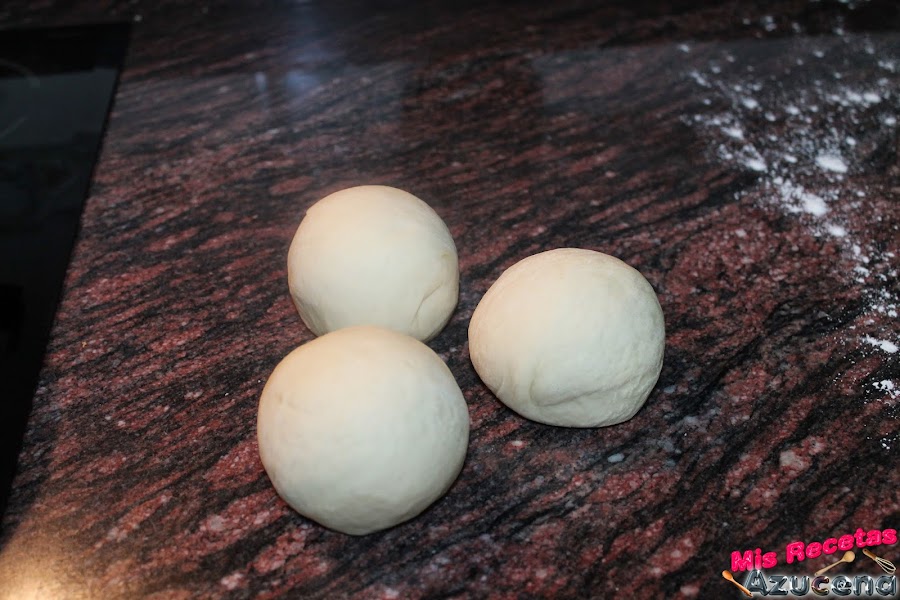 Pasados los 30 minutos, sacamos la masa y la haremos porciones de unos 130gr hacemos bolas, yo en esta ocasión las hice de 180gr para sacar solo 3 unidades.