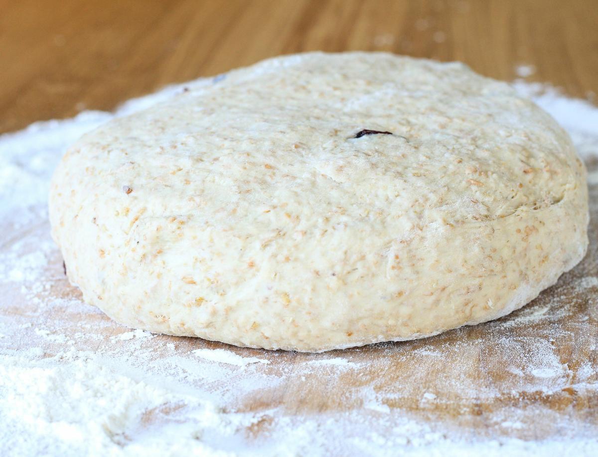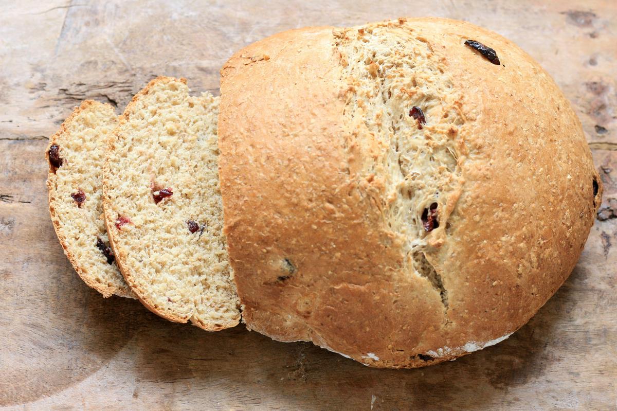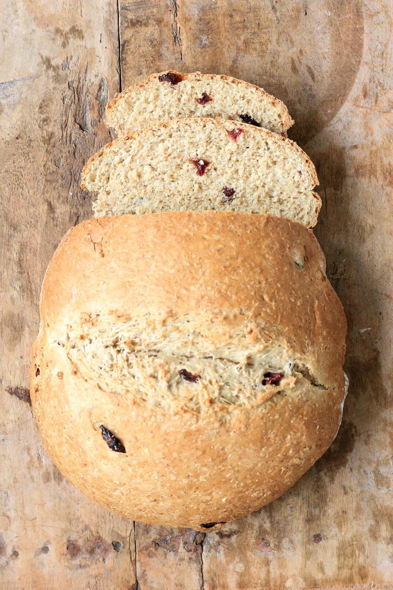 VUELVO A DONDE ESTABA. Aprendí a hacer esta receta porque a Lenny le encantan los panes con pasas, que acá son súper populares y los hay de todas las formas y tamaños. Pueden reemplazar los cranberries por pasas de uva, nueces, aceitunas, etc.