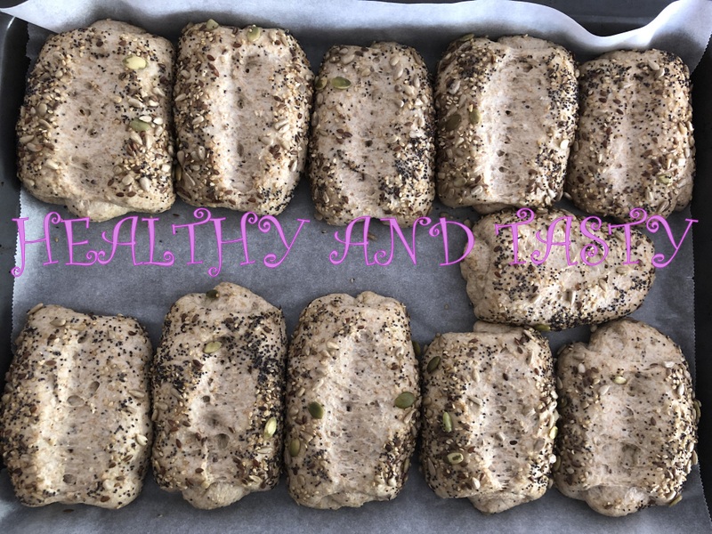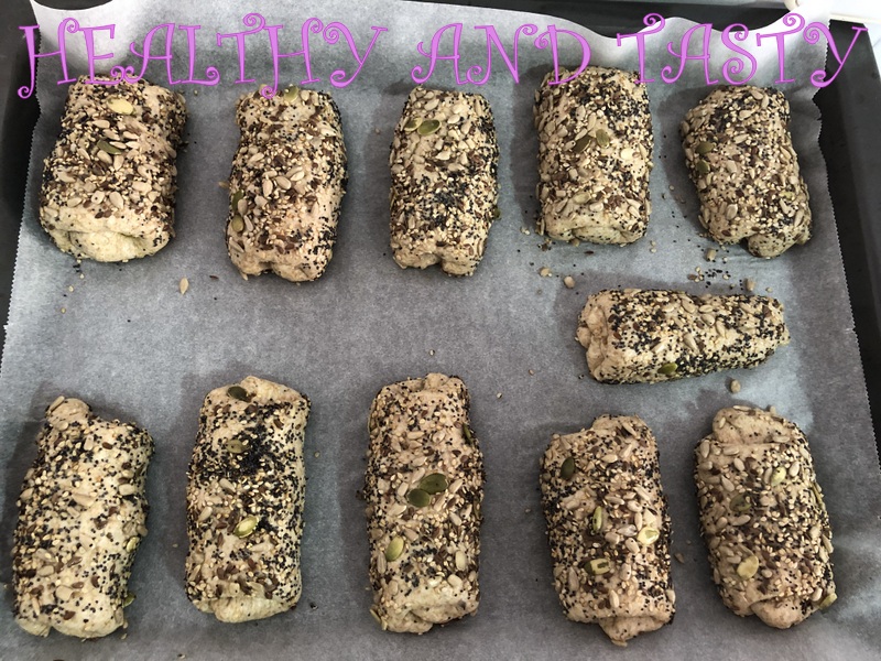 Pulverizamos los panecillos con un poco de agua si fuera necesario ( yo no lo he hecho) y los rebozamos por las semillas.