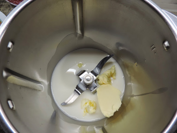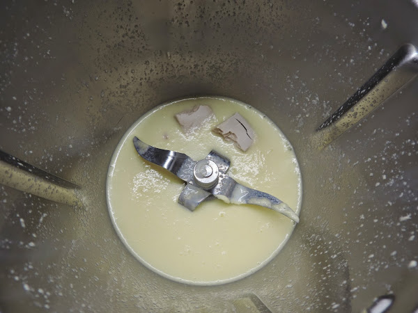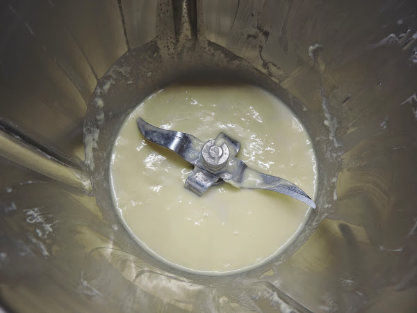 Poner la bebida de soja y la mantequilla en el vaso del thermomix, programar 3 minutos, 37º, velocidad 2.