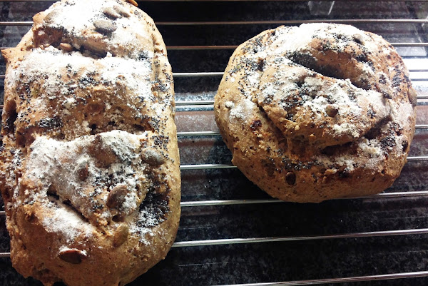Haz unos cortes en la superficie y espolvorea con harina, pipas y semillas de amapola (opcional).