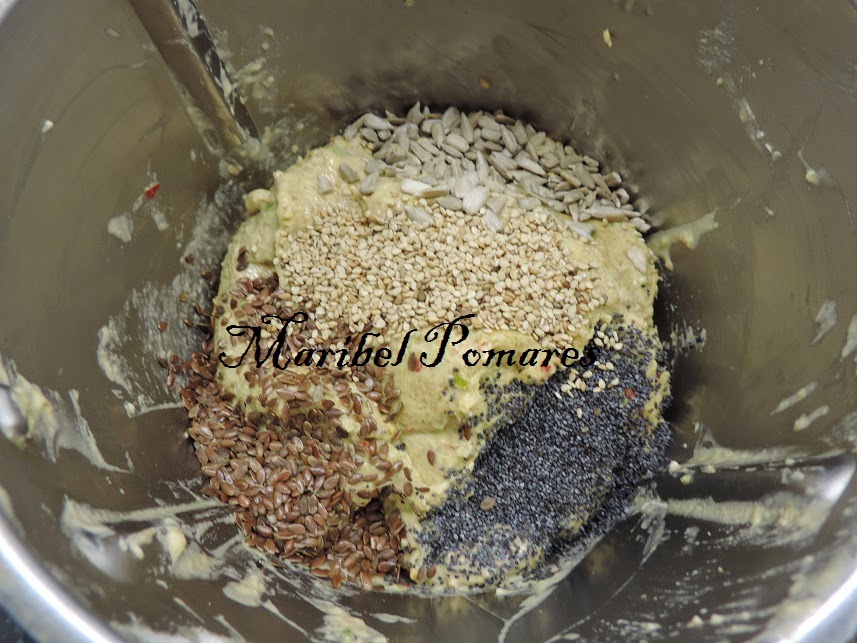 Añadimos las semillas de girasol. sésamo, amapola y linaza.