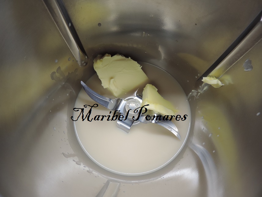 Ponemos la leche de avena y la mantequilla en el vaso del thermomix.