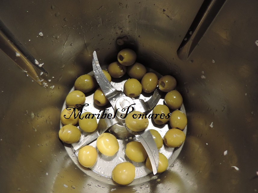 Ponemos las aceitunas rellenas en el vaso del thermomix.