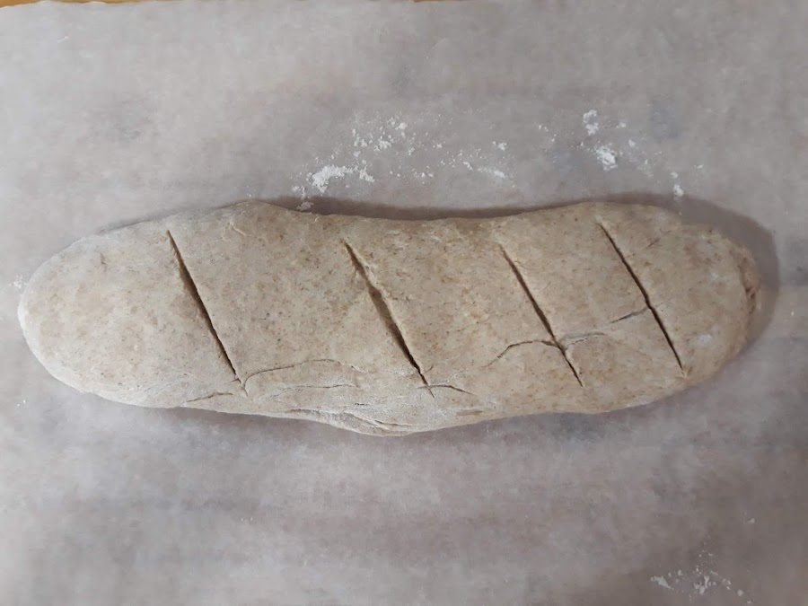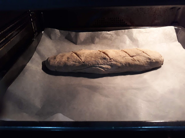 4.- Hacemos unos cortes en la barra y la metemos al horno sin precalentar, a 220º unos 40 minutos.
