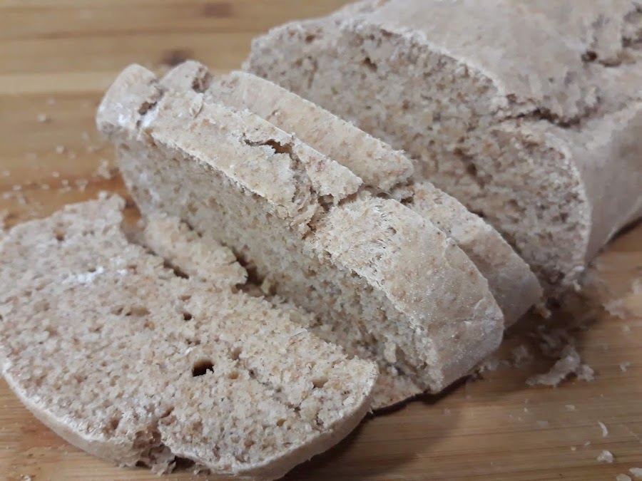 3.- Sacamos la masa del vaso sobre una superficie enharinada y le damos forma de barra de pan. Si en el vaso quedaran restos de la masa que no podéis sacar, volver a colocarlo en la thermomix y ponéis velocidad 8 a 10, tres segundos. para poder sacarla con la espátula.