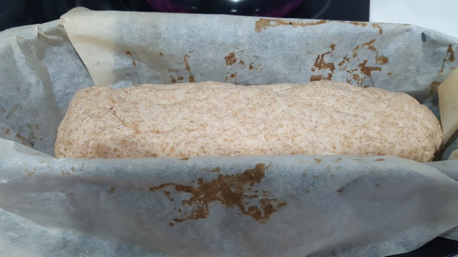 3.- Sacamos la masa del vaso, le damos forma de barra y lo ponemos en un molde tipo plum cake.